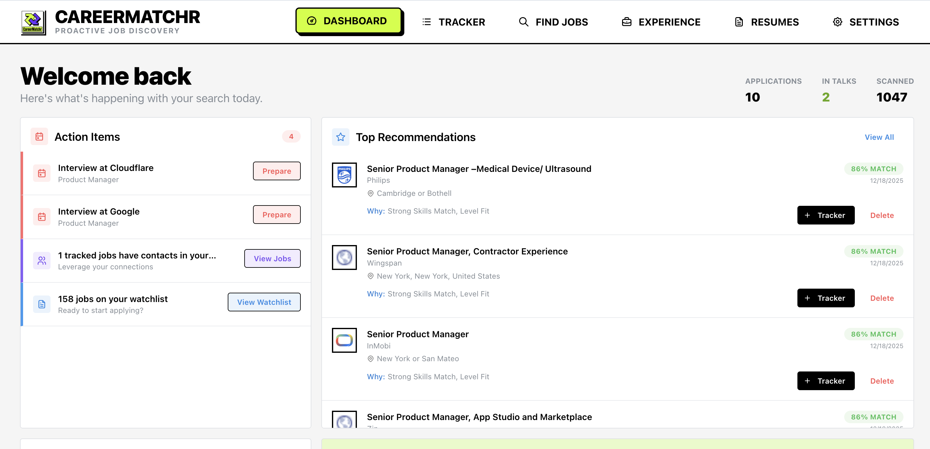 CareerMatchr allowed me to move from searching for Jobs to being one of the first to apply.